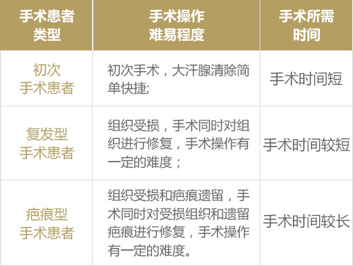 另外,患者所选择的手术类型是属于:单纯异味型、异味+多汗型、异味+多汗+多毛型等,也会造成手术所需时间的不同。